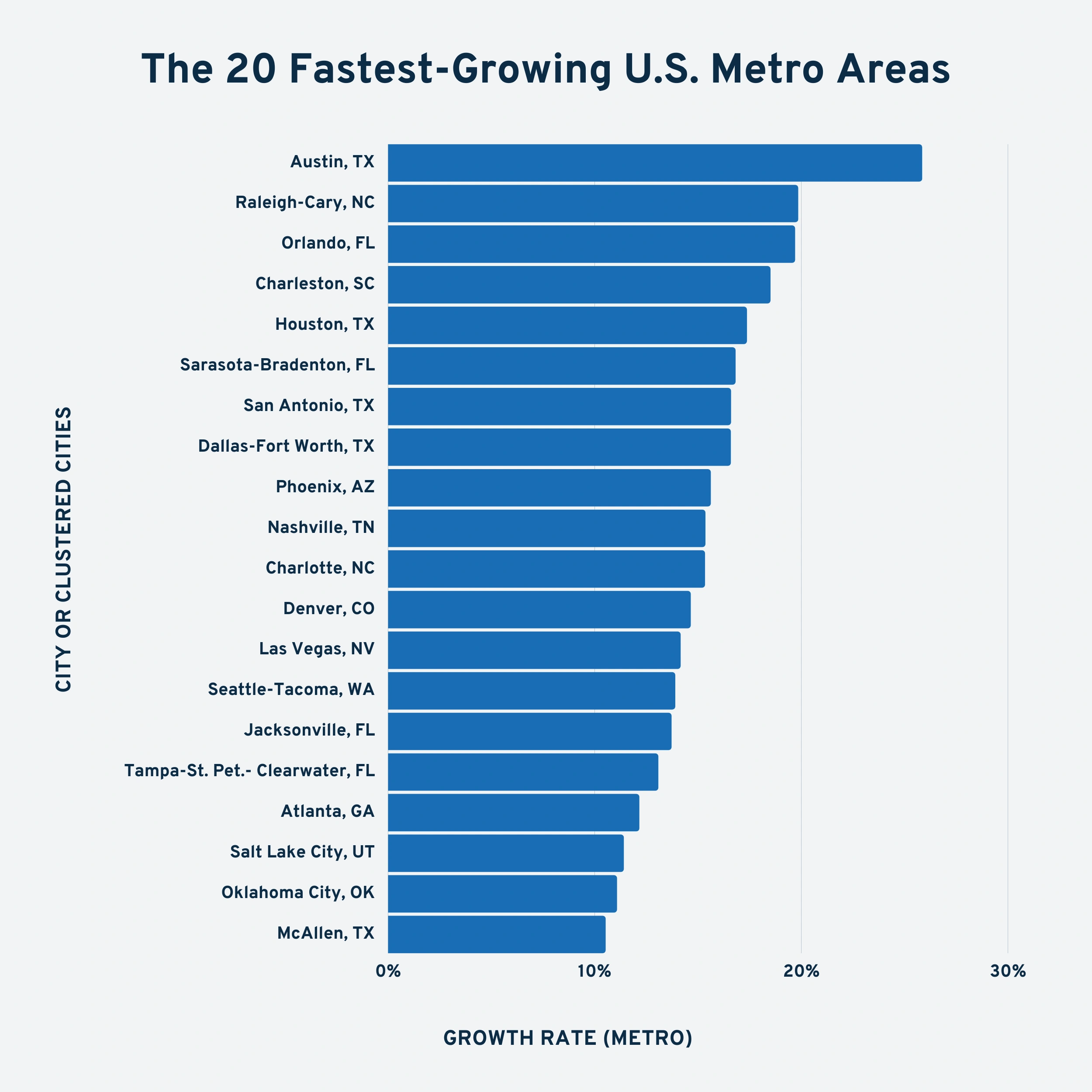 20 Fastest Growing Cities In The Us 2022 from explodingtopics.com Images information: Dimensions: 2500 x 2500 File type: jpg